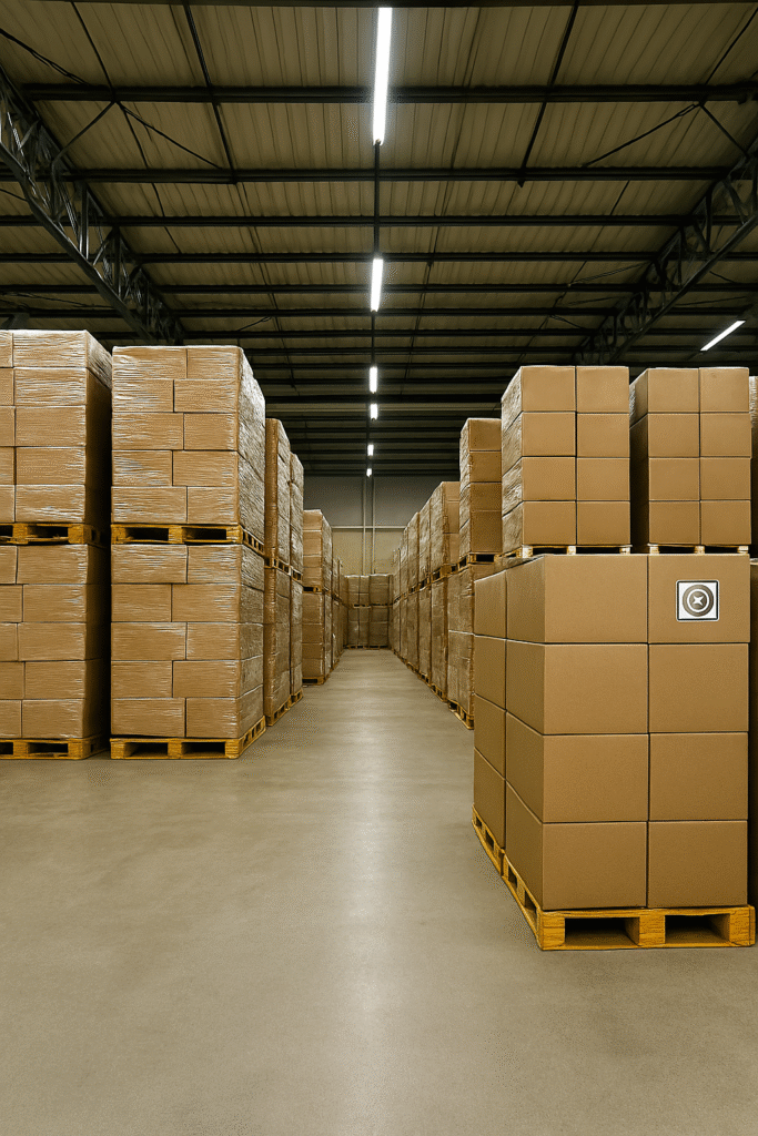 A armazenagem blocada consiste em empilhar os pallets diretamente no piso, formando grandes blocos, sem o uso de estantes. É indicada para produtos homogêneos e que não demandam movimentação individualizada frequente. Pode reduzir custos com estruturas metálicas, porém o acesso aos pallets é feito pelo método “Last In, First Out” (LIFO), dificultando a retirada seletiva.